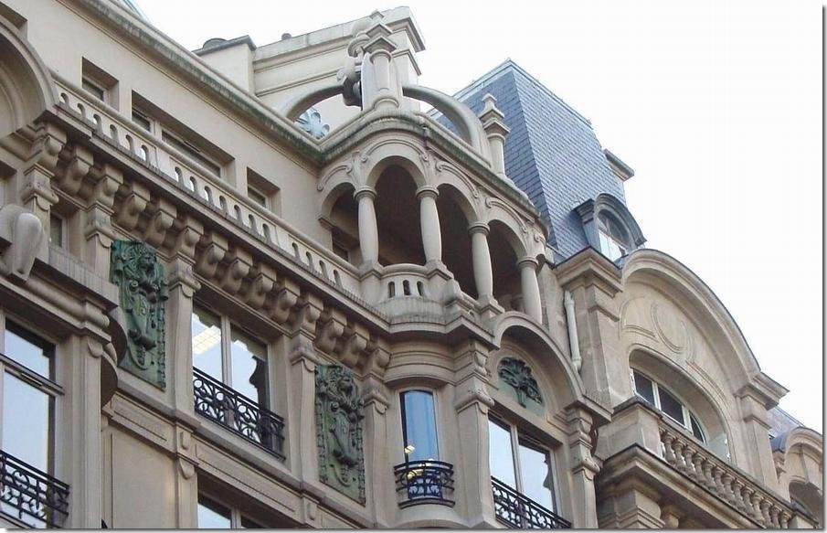 L'immeuble est frappé de l'inscription système Hennebique, inaugurant de cette manière la combinaison céramique-béton. En 1901, il fait construire l'un des tout premiers immeubles parisiens entièrement en béton, sur un terrain de forme triangulaire, exigu et cher, acheté à la ville en 1899. L'architecte Edouard Arnaud propose de décorer tous les fonds en revêtement céramique ou mosaïque comme Alexandre Bigot qui agrémentera ainsi la façade de panneaux décoratifs.