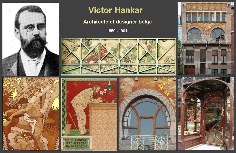 Biographie Victor Hankar , architecte et designer belge, est né le 11 décembre 1859 à Frameries (Belgique) Il a été l'un des principaux représentants de l'Art Nouveau à Bruxelles. Après une formation de sculpteur, il étudia à l'Académie des Beaux-arts de Bruxelles où il rencontre Victor Horta avec qui il se lie d'amitié avant de devenir un de ses compétiteurs. Il étudia également la technique du fer forgé qu'il utilisera dans la plupart de ses projets. Lors de l'Exposition Universelle de 1879 à Bruxelles, il fut chargé avec Henry Van de Velde, Gustave Serrurier-Bovy et Georges Hobé de concevoir l'Exposition congolaise où le nouveau style Art Nouveau s'exprime avec vigueur. Il débute, en 1888, son activité d'architecte et de créateur de meubles à Bruxelles et il collabora avec Adolphe Crespin, décorateur d'intérieur et spécialiste des sgraffites. En 1893, il construisit sa propre maison, qui est considéré le premier bâtiment Art Nouveau à Bruxelles en même temps que le célèbre Hôtel Tassel construit par Victor Horta. Victor Hankar est mort le 17 janvier 1901 à Bruxelles (Belgique)