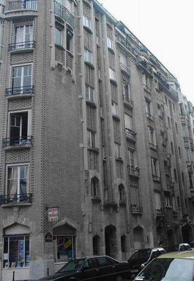 C'est le dernier immeuble d'Hector Guimard, construit sur un terrain acquis par lui en 1923, les façades s'étendent sur près de vingt mètres. L'exposition des Arts décoratifs a fermé ses portes, désormais, l'architecture tourne ses regards vers les USA. L’ensemble immobilier évoque plutôt les grands ouvrages New Yorkais que parisiens, seule concession à la fantaisie, la disposition des fenêtres sur la façade et la présence de quelques "bow-windows".