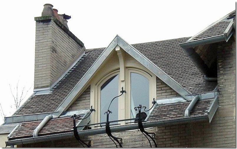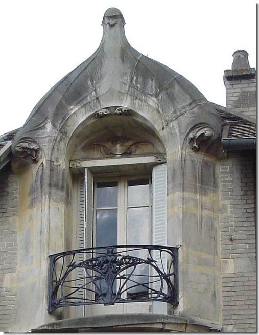 Contrairement à ce que fait ordinairement Guimard les six fenêtres toutes dissemblables sont cependant placées symétriquement. L'immeuble a été traité à l'aide de coloris beige et gris qui s'accommodent bien avec les tonalités de la pierre de taille. Le décor est réduit à l'extrême; en guise de console pour soutenir les balcons, quelques houles de pierre sculptée. Comme à l'habitude, la manière de traiter le fer forgé est remarquable telle la gouttière du dernier étage soutenue par un mince appareil de ferronnerie simulant des torches qu'on allumerait pour éclairer une fraction de la couverture.