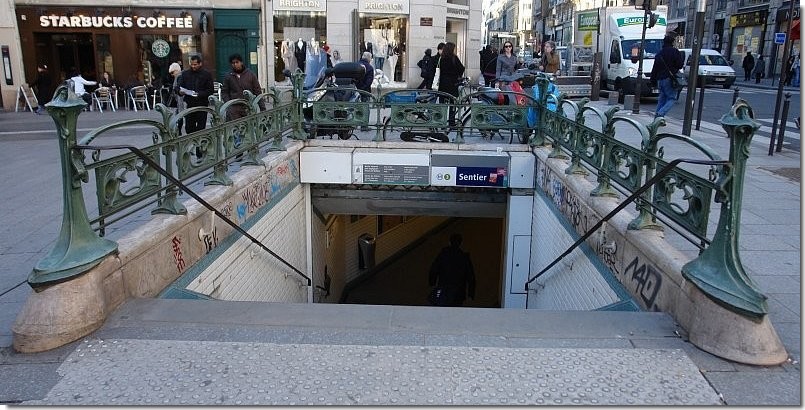 L'entré est située sur la ligne n°3 ( Pont de Levallois - Gallieni ) avec une entrée basse à cartouches située au 21, rue des Petits Carreaux et une autre dans l'immeuble du 97, rue Réaumur.