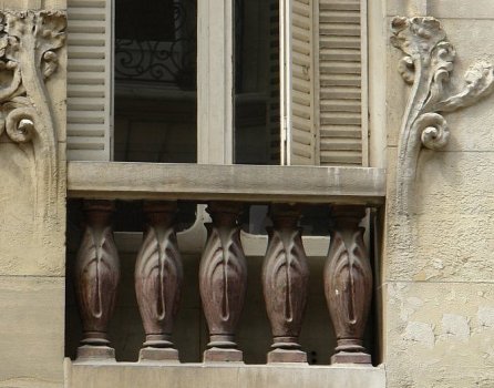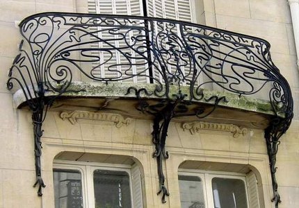 Les grilles et les balustrades en fer forgé reçoivent cependant un décor abstrait, dessiné par l’architecte. Par ailleurs, le décor végétal fait de courbes et de contre-courbes domine et s’impose avec une grande légèreté, présence également d'un décor animal. Les Ferronneries sont l'oeuvre de Dondelinger, les sculptures de Léon Binet comme pour le 23, avenue de Messine à Paris 8e Immeuble occupé actuellement par un collège Italien.