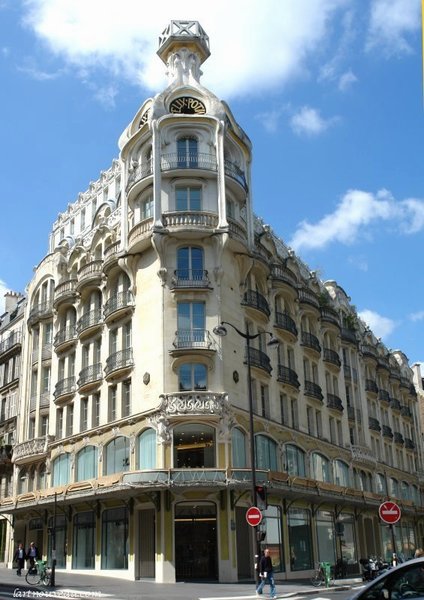 Immeuble de dix étages construit en 1904 par l'architecte Paul Auscher, pour la maison d'alimentation Félix Potin fondée en 1844. Ce fut le premier magasin construit en ciment armé, l'édifice de sept niveaux a été bâti en deux ans, il comportait les magasins d'approvisionnement et de vente au public, situés dans les deux sous-sols, au rez-de-chaussée et à l'entresol, avec des bureaux et des logements au-dessus.