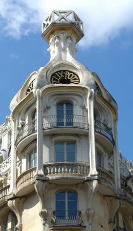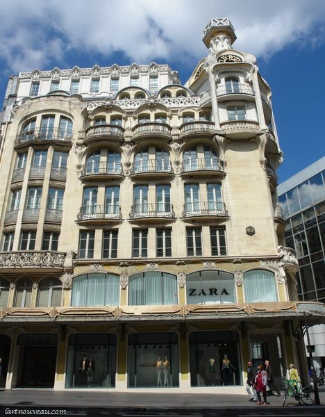 Le décor intérieur a disparu mais les arcatures en rez-de-chaussée conservent leurs formes Art Nouveau et des cartouches revêtus de mosaïque, avec les inscriptions "thé, lunchs, pâtisserie, five o'clock, biscuits, chocolats, confiserie, baptêmes, cacaos, café, parfumerie, brosserie, fruits, poissons de mer et d'eau douce, manutention". La tourelle d'angle en ciment est couronnée d'un campanile évidé où se lit toujours le nom de Félix Potin De forme arrondie, il se frise comme une rotonde en bourgeon. L'avant dernier niveau comporte un balcon avec balustrade, supporté par des consoles de stylisation florale, très poussée, allégeant la monumentalité de la construction. Les deux derniers niveaux sont vraiment un manifeste de ce nouvel art de construire. De forme arrondie, il se frise comme une rotonde en bourgeon. La technique de cette partie est particulière par l’utilisation du béton armé en façade. L'avant dernier niveau comporte un balcon avec balustrade, supporté par des consoles de stylisation florale, très poussée, allégeant la monumentalité de la construction. Après le départ du magasin Tati en avril 1999 le bâtiment a été remanié . Propriétaire actuel les AGF, occupants successifs Félix Potin, Monoprix, Tati et Zara.