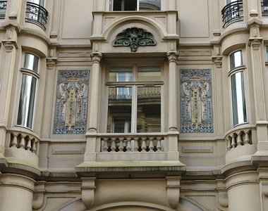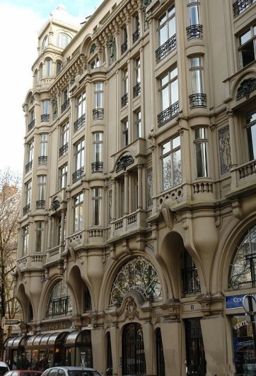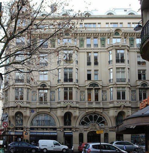 L'immeuble est frappé de l'inscription système Hennebique, inaugurant de cette manière la combinaison céramique-béton. En 1901, il fait construire l'un des tout premiers immeubles parisiens entièrement en béton, sur un terrain de forme triangulaire, exigu et cher, acheté à la ville en 1899. L'architecte Edouard Arnaud propose de décorer tous les fonds en revêtement céramique ou mosaïque comme Alexandre Bigot qui agrémentera ainsi la façade de panneaux décoratifs.