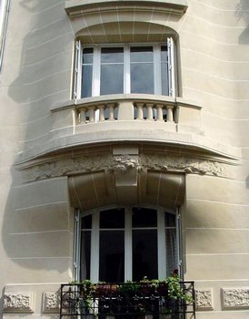 Le contour des fenêtres est fluide et les balcons sont soutenus par des consoles imposantes à décor floral. Le balcon du cinquième étage est également imposant et richement décoré par des motifs floraux.