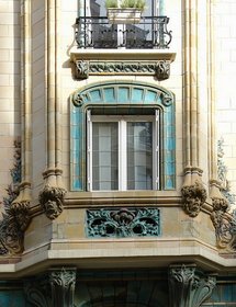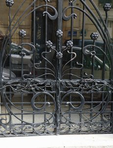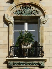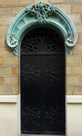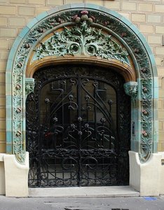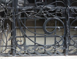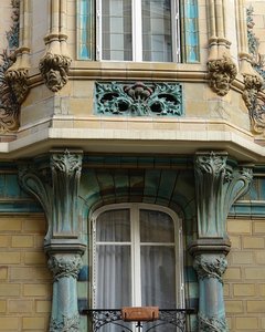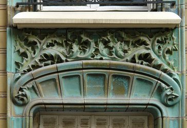 La porte entourée de grès a une ferronnerie de Dondelinger, celui-ci participa également avec l’architecte Jules Lavirotte à l’hôtel de la rue Sédillot La façade a été primée au concours des façades de la Ville de Paris en 1903 Inscription aux Monuments Historiques par arrêté du 22 avril 1986 (Façade sur rue; toitures; vestibule d'entrée; cage d'escalier avec sa rampe en fer forgé)