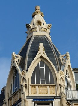 Les six immeubles construits par l'architecte Théo Petit situés aux 132-134 rue de Courcelles, 5-7 rue Cardinet et 103-105 rue Jouffroy ont des tailles, décorations, standing et formes de toitures différentes.