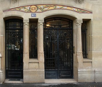 Présence de bandeaux de mosaïque réalisés par Alexandre Bigot, de deux dômes évoquant l'Europe centrale Les principaux immeubles sont ceux des 132 et 134 rue de Courcelles qui sont en angles avec les deux autres rues Les sculptures sont dues aux sculpteurs Henri Bouchard et L. Binet – motifs de style art nouveau: chats, tortue, grenouille, oiseaux etc.. Théo Petit est également l'auteur d'un immeuble 276, boulevard Raspail à Paris 14e